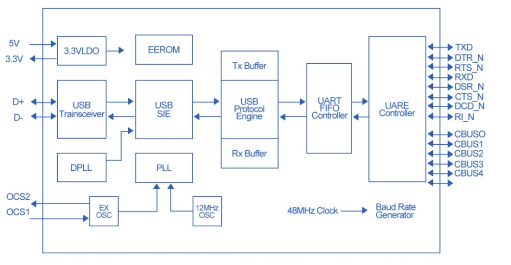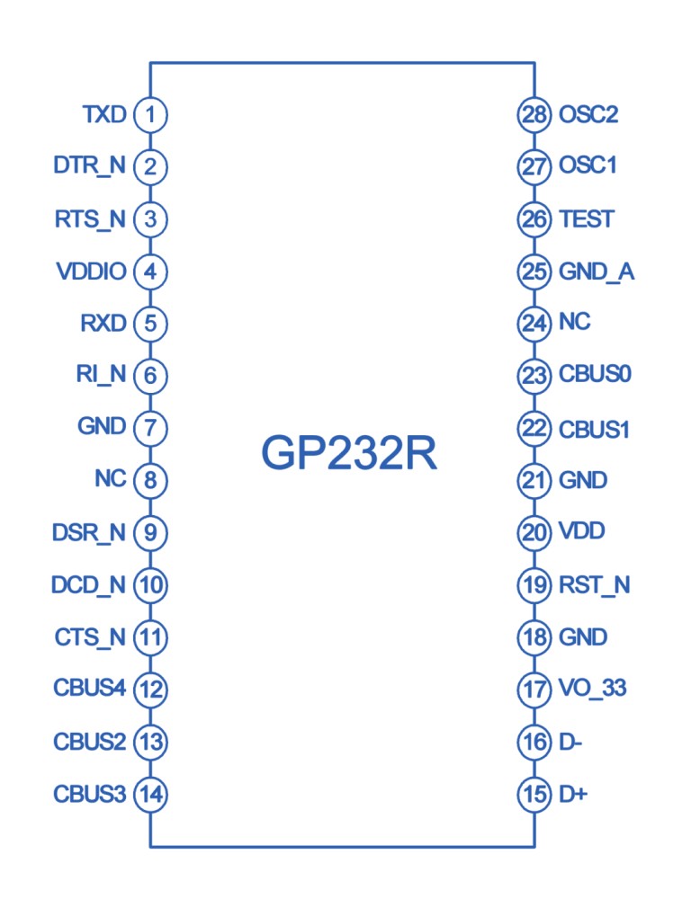 Highly integrated USB 2.0 Full-Speed to UART bridge (SSOP28)
